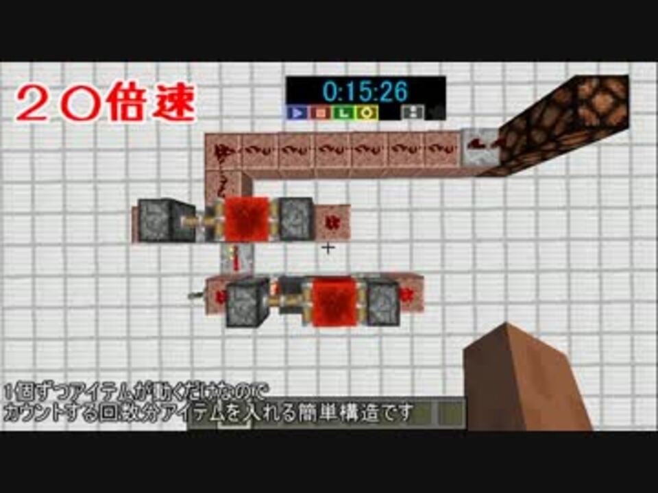 秒表示のタイマーですが、ミニゲームの制限時間や経過時間を計るには十分だと思います。 パワーアップした新タイマーはこちら→ 多機能!タイマーデラックス。 お知らせ 晋遊舎(しんゆうしゃ)出版のマイクラ本に、作例を提供させていただきました。 このページでは、周期の長いクロック回路を紹介しています。 周期の短いクロック回路については「 よく使用する基本回路 」のページにあります。 「Java Edition 1164」で確認したものです。 バージョンが違う場合、挙動が変わる可能性があるのでご注意長周期タイマーの作り方 長周期タイマーも、基本的にはホッパーを使用した同じ原理の装置です。 ホッパー4つを円形に組み、アイテム移動の順番を整理するレッドストーンをピストンで制御するだけ。 このままでは途切れるポイントのないクロック回路